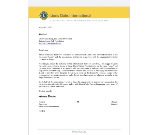 財團法人台灣獅子會基金會 (LCTF) 獲得國際總會認可